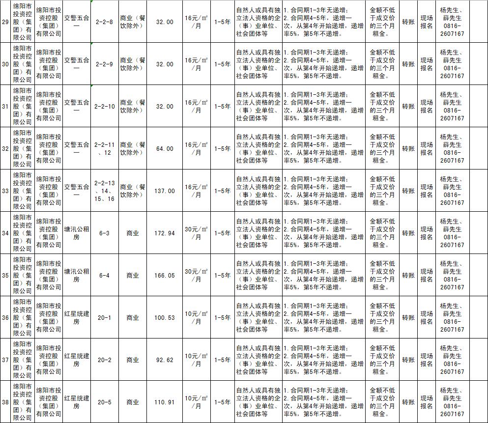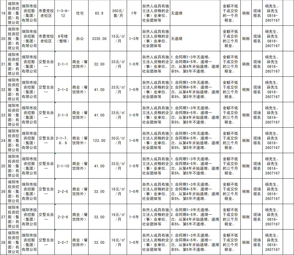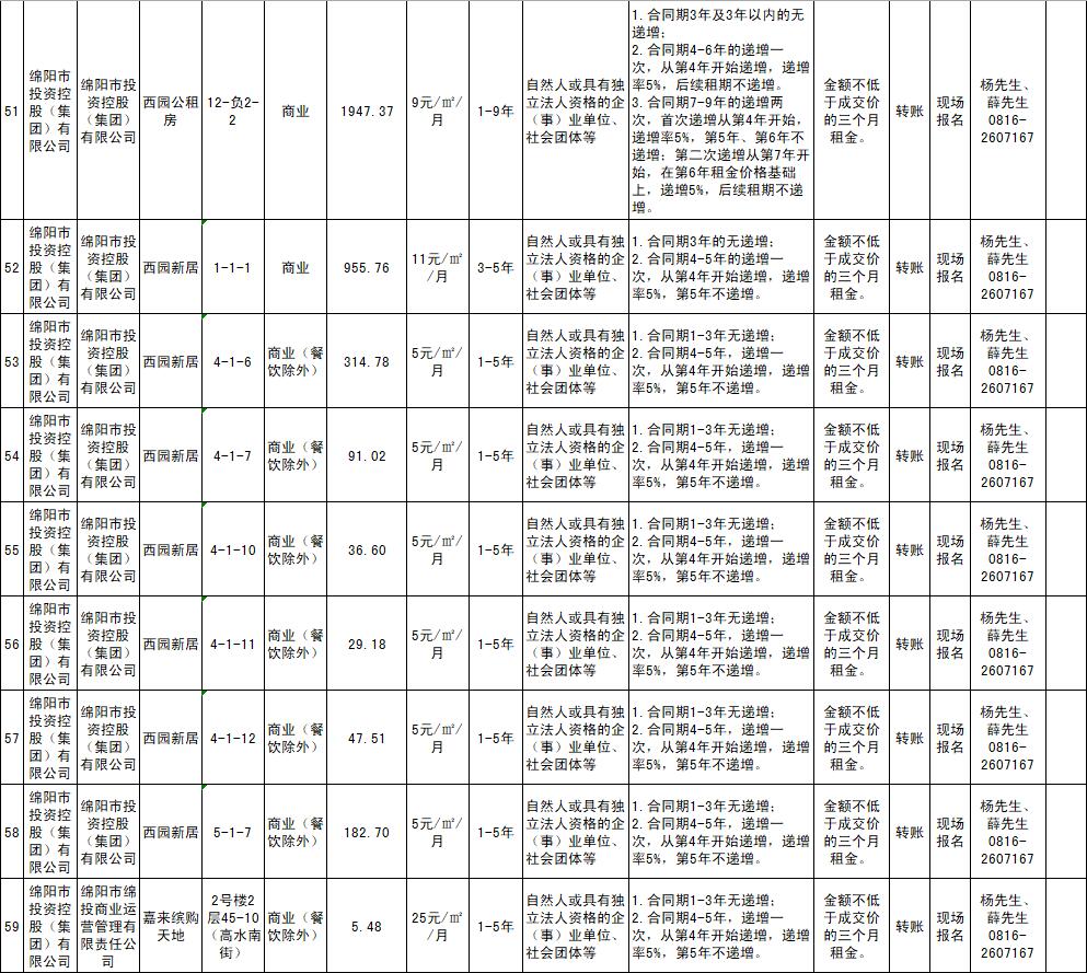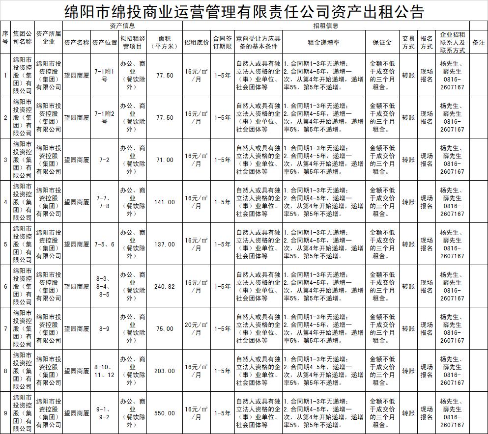 綿陽市綿投商業(yè)運營管理有限責(zé)任公司資產(chǎn)出租公告