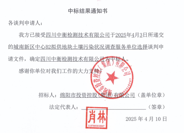 城南新區(qū)中心B2擬供地塊土壤污染狀況調查服務單位選擇中標結果通知書
